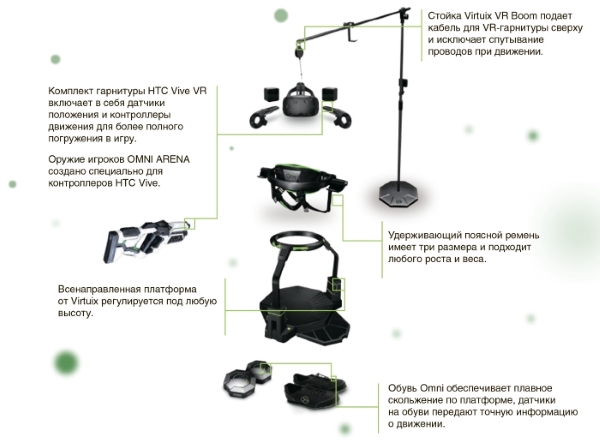Omni Arena – это высокотехнологичное надежное оборудование, при производстве которого учтены все актуальные разработки в области виртуальной реальности. Здесь продумана каждая деталь.