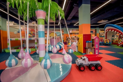 Для самых маленьких посетителей создана отдельная детская страна с множеством развлечений: мягким лабиринтом с горками и сухим бассейном, развивающими настенными панелями и столиками, а также реалистичными домиками для ролевых игр. Здесь есть штаб полиции, медпункт и салон красоты, где малыши найдут большое количество тематических игрушек.