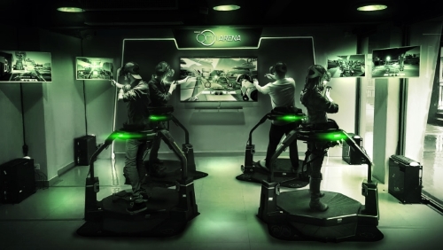 - для 2 игроков (дорожки, гарнитуры и оружие), 3 монитора для зрителей, 3 игры.