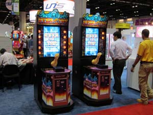 Настоящий фурор среди посетителей выставки произвела новинка от компании SEGA – первый в индустрии развлекательный аппарат, представляющий собой увлекательную видеогонку и аппарат формата редемпшн одновременно. Яркая графика, неоновая подсветка и революционный формат видеоредемпшена без сомненья найдут популярность в различных форматах детских центров.
