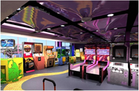 В игровой зоне представлены новинки игровых аппаратов, самые популярные видеоаппараты: симуляторы стрельбы и гонок, красочная аппараты с выдачей призовых билетиков. Многим детям понравится увлекательный лабиринт - красочный аттракцион, состоящий из горок, сухого бассейна с шариками и разнообразных интерактивных элементов.