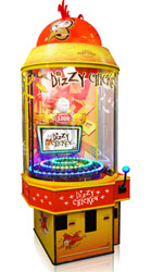 Аппарат Dizzy chicken – Шарик начинает движение по спиралеобразному треку с разноцветными секторами огоньков, когда игрок дергает за рычаг. Цель – заработать как можно больше бонусных очков, угадав в какой цветовой сектор попадет шарик. Больше всего очков Вы заработаете, если шарик остановится напротив одного светящегося огонька. Аппарат развивает ловкость и смекалку. Динамику и азарт игре придает забавная музыка. Целевая аудитория – дети и подростки от 7 до 19 лет.
