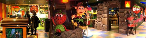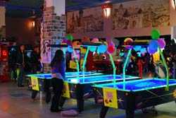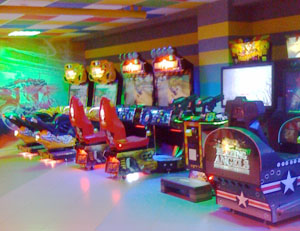 Здесь, на площади в 500 кв. метров Вас ждут более 30 интереснейших игровых аппаратов, среди которых: призовые, спортивные и видеосимуляторы, столы для игры в аэрохоккей и мини-аттракционы для самых маленьких, детский лабиринт, детская комната, кафе.