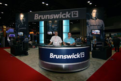 Интересным дополнением к экспозиции стенда нашей компании стала демонстрация инновационных разработок от компании Brunswick Bowling: динамическая подсветка кеглей и фрагмент покрытия дорожки боулинга со светящимся при ультрафиолетовом освещении рисунком. На стенде также была представлена часть конструкции дорожки боулинга и сымитирована зона отдыха игроков, оснащенная комфортными диванами от Brunswick Bowling (США).