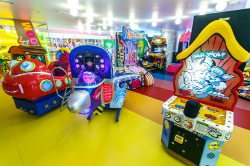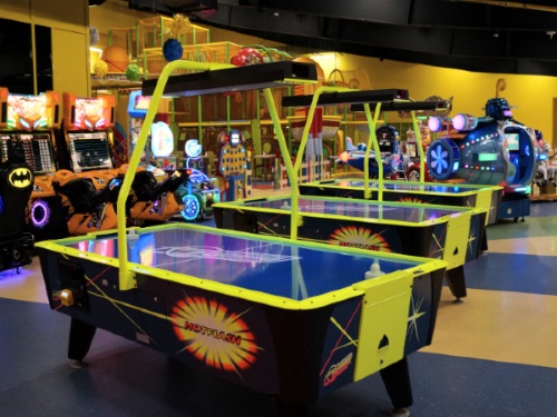 Более 90 современных игровых аппаратов: аэрохоккеи, призовые аппараты, спортивные аппараты, кран-машины, качалки и карусели.