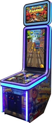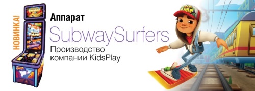 - Аппарат Subway Surfers очень популярен в мире. Он создан по мотивам известной игры для сматрфонов, количество пользователей которой достигает 135 миллионов. Однако играть в аппарат значительно интереснее, так как по результату игры автомат выдает призовые билеты.