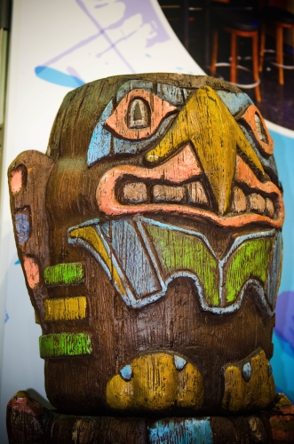 Тотемы впечатляют: их высота 2,5 метра, а основание 0,5х0,5 м. Они выполнены стекловолокна и акрила, прочные, легкие, устойчивые к износу. В то же время внешне тотемы выглядят как настоящие: грубо вытесанные из дерева индейским топориком с яркой боевой раскраской. Такая декорация отлично подойдет для оформления входной группы.